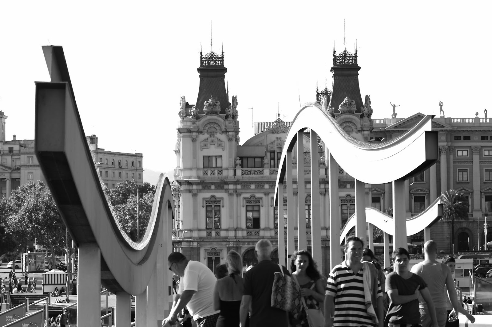 Wcześniej znajdowały się tu stare fabryki, tory kolejowe i opustoszałe magazyny. Idąc wzdłuż pomostu zwanego Rambla del Mar mijamy czarnoskórych handlarzy prezentujących swoje towary rozłożone na małych kocykach. Głównie są to podróbki markowych toreb, okularów przeciwsłonecznych i pasków. Schodząc na niższe partie pomostu można usiąść na białej ławeczce i podziwiać wpływające do portu jachty żaglowe i unoszące się na wodzie ptaki. Wyobrażam sobie, że w mniej obleganym miesiącu jest to bardzo relaksujące miejsce, jednak w tym dniu niestety mam zbyt mało czasu aby delektować się tą chwilą.
